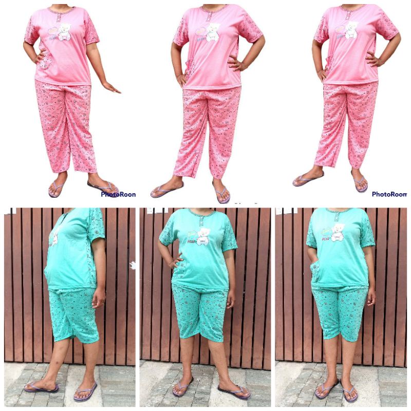 Baju tidur babydoll dewasa model pendek 3/4 bahan kaos ld 100 cm.